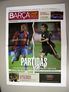 カンプ・ノウで配っていたマッチデー新聞。一面は、バルセローナのロナウジーニョとバレンシアのモリエンテスの両雄でした